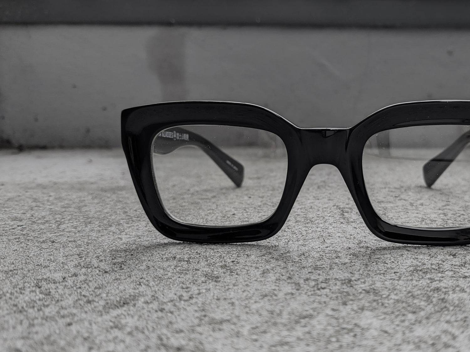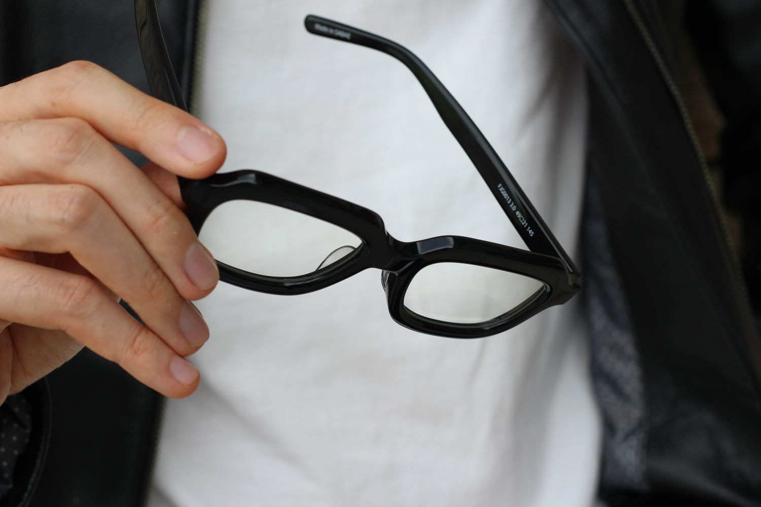 スタイリシュなデザインで人気の『AYROS(アイロス)』の凹凸を 反転させたようなウェリントンシェイプ 8mm素材で作られた極太な黒縁フレームでインパクトを持ちつつも 縁に入ったカットでメリハリとスタイリッシュさを併せ持っています。 黒縁でも重たすぎず軽すぎない適度な目元にしてくれます。